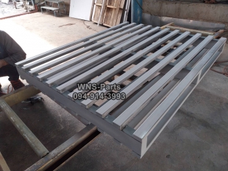 ผลิตพาเลทตามแบบ เหล็กเชื่อมและเก็บรอยตามมุม พ่นสีฝุ่นให้ลูกค้า